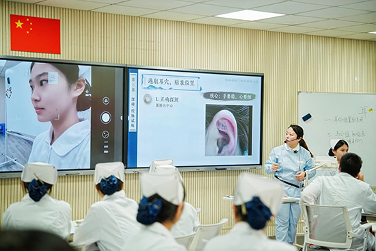 在這一背景下,羅丹老師精心設計并推出了《仁心仁術,養護健康——耳穴壓豆技術》公開課。“我們的學生已具備一定的專業基礎、臨床操作能力以及初步的中醫護理思維。在此基礎上,我們與時俱進,推動中西醫護理知識的融合創新,為護理實踐注入更多元、更貼近群眾健康需求的技術力量。”羅老師說。