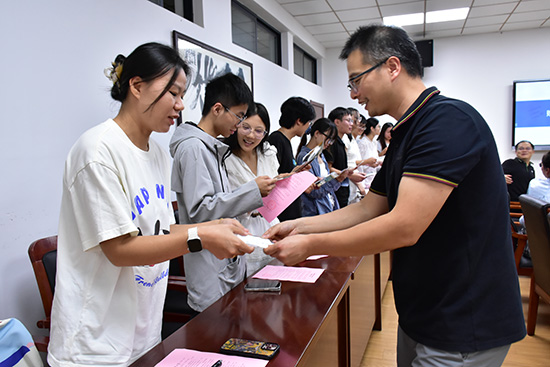 在師徒簽訂結(jié)對協(xié)議環(huán)節(jié),雙方鄭重落筆,許下攜手并進(jìn)、共同成長的堅定承諾。隨后,學(xué)校為新教師送上了精心準(zhǔn)備的入職紀(jì)念品,一張定格著入職后第一次站上講臺的照片與一張祝福滿滿的明信片相互融合,匯成一份溫暖的囑托,表達(dá)了學(xué)校最誠摯的歡迎與關(guān)懷。同時,學(xué)校向?qū)焸冾C發(fā)了聘書,感謝他們所傾注的心血與智慧。
