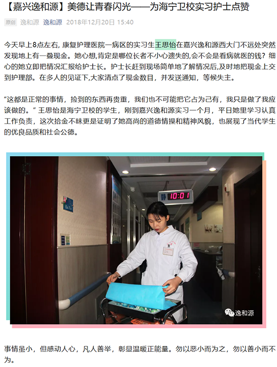 武于路和沈佳妮同學(xué)拾金不昧的行為,也是學(xué)校長期以來注重立德樹人的生動體現(xiàn)。在黨政班子的有力領(lǐng)導(dǎo)下,學(xué)校始終堅持“育人育才并舉,育才先育人”理念,將德育貫穿于教育教學(xué)的全過程,培養(yǎng)“勤于學(xué)習(xí)、精于操作、善于溝通、甘于奉獻(xiàn)”的海衛(wèi)天使。健康所系,性命相托,學(xué)校從主題班會到校園文化活動,從課堂思政到社會實踐,無不浸潤著對學(xué)生品德修養(yǎng)的塑造。這一次的暖心事件,正如之前公交車上教科書式救人的華智宇、商場里施救急癥病人的凌琴琴、街頭對倒地老人展開急救的孫晶晶與孫潔、實習(xí)醫(yī)院里拾金不昧的王思怡、實習(xí)崗位上以精湛技能貼心護(hù)理感動病人的張輝和楊瀅瀟……一個個美麗的天使的涌現(xiàn),正是學(xué)校育人成果的生動縮影。