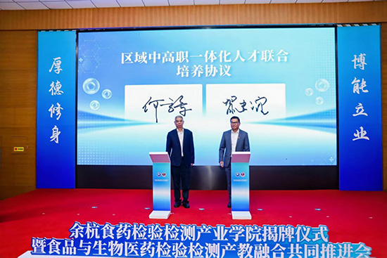 余杭區教育局黨委書記、局長吳文星與浙江經貿職業技術學院校長陳德泉共同簽署《共建余杭食藥檢驗檢測產業學院合作協議》,標志著校地合作從“規劃”邁向“落地”。