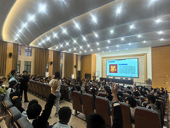 “青少年是國家的未來,必須學法、知法、懂法!”孟柳霞的開場直切主題。她先從憲法講起:“大家要先弄清憲法賦予的權利,比如勞動權、受教育權、休息權;也要牢記應盡的義務,像愛國、守法、服兵役,這些都是法治社會的基礎。”為了讓知識更易吸收,她現場拋出“我國的根本大法是( )”“專門保護未成年人的法律是( )”等問題,學生們紛紛舉手搶答,氣氛瞬間熱烈起來。隨后,孟柳霞重點強調了兩個“關鍵提醒”:一是明確十四至十六周歲青少年需承擔刑事責任的“故意殺人、強奸”等八個特定罪名,二是列出“營業性KTV、歌廳、酒吧”等未成年人不宜進入的場所,讓學生們清晰知曉“法律紅線”。在“防范電信詐騙”“遠離毒品危害”“拒絕校園欺凌”環節,她結合身邊真實案例,細致拆解風險點與防范方法,還通過一個個互動小問題引導學生主動思考,讓法治意識真正“入耳入心”。講座最后,孟柳霞以“珍惜自身成長,自覺遵守法律,才能避免走上違法犯罪的道路”收尾,為這場課畫上圓滿句號。“這樣的講座太有用了!不僅學到了法律知識,還明白該怎么保護自己,回答問題拿到的馬克杯也很有紀念意義!”802班的小駱拿著禮物,臉上滿是笑容。