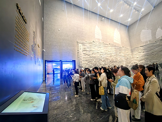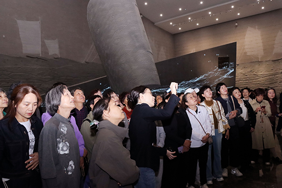 浙東運(yùn)河博物館內(nèi),老年學(xué)員們在講解員的帶領(lǐng)下,沿“運(yùn)河緣起—水運(yùn)興盛—文化交融” 的展陳脈絡(luò)緩步前行。講解間隙,老年學(xué)員們不時(shí)提問交流,探討運(yùn)河對浙東地區(qū)民俗、商貿(mào)、城市發(fā)展的深遠(yuǎn)影響。在四十分鐘的研學(xué)時(shí)光里,追溯運(yùn)河歷史脈絡(luò),從千年水運(yùn)文化中感悟時(shí)光沉淀的生命力量。