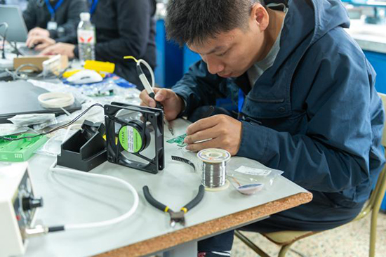 作為職業(yè)教育創(chuàng)新創(chuàng)業(yè)生態(tài)的核心支撐,中職教師的創(chuàng)新實(shí)踐能力、成果轉(zhuǎn)化能力直接決定著學(xué)生創(chuàng)新素養(yǎng)的培育質(zhì)量。此次賽事精準(zhǔn)聚焦師資能力短板,以 “實(shí)戰(zhàn)化” 競(jìng)賽設(shè)計(jì)構(gòu)建起師資能力提升的 “閉環(huán)體系”。在3小時(shí)的文本制作環(huán)節(jié),教師需完成創(chuàng)新作品文稿撰寫與 PPT 制作,考驗(yàn)的不僅是文字表達(dá)能力,更是對(duì)創(chuàng)新理念的梳理、技術(shù)方案的論證能力 —— 這正是日常教學(xué)中引導(dǎo)學(xué)生開展項(xiàng)目式學(xué)習(xí)、撰寫創(chuàng)新方案的 “前置訓(xùn)練”;8小時(shí)的現(xiàn)場(chǎng)制作環(huán)節(jié),教師需利用通用工具、基礎(chǔ)材料及自備核心元件完成實(shí)物或模型創(chuàng)作,從圖紙?jiān)O(shè)計(jì)到動(dòng)手組裝,從問題調(diào)試到功能優(yōu)化,全程模擬真實(shí)創(chuàng)新項(xiàng)目開發(fā)流程,有效彌補(bǔ)了部分教師 “重理論講授、輕實(shí)踐操作” 的能力短板;而6分鐘展示與4分鐘答辯環(huán)節(jié),則要求教師精準(zhǔn)提煉作品創(chuàng)新點(diǎn)、清晰闡述技術(shù)路徑,同時(shí)快速回應(yīng)評(píng)委關(guān)于可行性、實(shí)用性的提問,這一過程顯著提升了教師的創(chuàng)新成果表達(dá)能力與臨場(chǎng)應(yīng)變能力,為后續(xù)指導(dǎo)學(xué)生參與各類創(chuàng)新競(jìng)賽積累了全流程的寶貴經(jīng)驗(yàn)。
