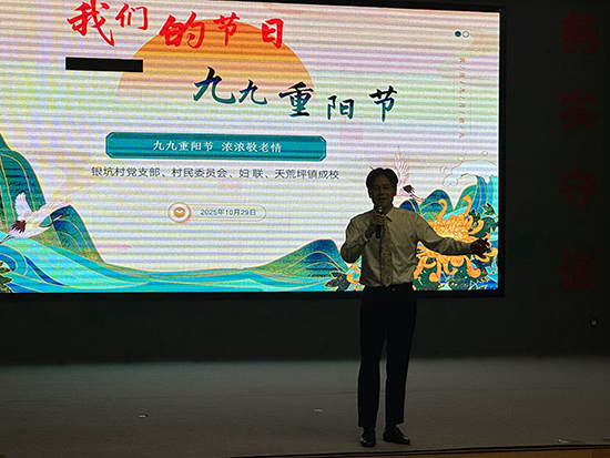 10月29日重陽佳節,天荒坪鎮銀坑村文化禮堂燈火通明,由安吉社區教育學院天荒坪分院(天荒坪成校)與銀坑村委聯合主辦的“九九重陽節 濃濃敬老情”主題晚會溫情上演。近百名村民齊聚一堂,其中老年葫蘆絲班與歌詠班學員以精湛才藝獻禮重陽,展現新時代老年人積極向上的精神風貌。