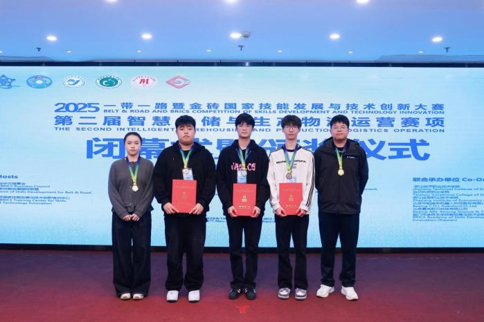 在賽事角逐中,教師組與學(xué)生組雙線告捷。由吳雅婷、王錚兩位教師組成的教師團(tuán)隊(duì),憑借對智慧倉儲(chǔ)運(yùn)營邏輯的精準(zhǔn)把握、智慧物流設(shè)備的嫻熟操作,以及對賽題需求的高效響應(yīng),一路穩(wěn)扎穩(wěn)打,成功摘得教師組金獎(jiǎng);學(xué)生組方面,物流商貿(mào)專業(yè)的胡俊杰、黃志軍與高俞范涵三位同學(xué)緊密協(xié)作,在高強(qiáng)度賽程中沉著應(yīng)對挑戰(zhàn),將課堂所學(xué)與實(shí)訓(xùn)技能靈活運(yùn)用到實(shí)際操作中,最終拿下學(xué)生組銀獎(jiǎng)。