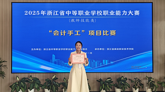 11月2日下午,杭州的決賽賽場傳來振奮人心的捷報 —— 在 2025 年浙江省中職學(xué)校職業(yè)能力大賽中,永康市職業(yè)技術(shù)學(xué)校的張穎老師憑借扎實的專業(yè)功底、創(chuàng)新的教學(xué)設(shè)計與從容的臨場表現(xiàn),從全省各地市30余位精英選手的激烈角逐中脫穎而出,一舉奪得“會計手工”項目一等獎,斬獲浙江省第一名的佳績! ?