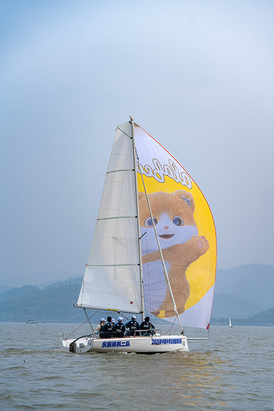 東旅揚(yáng)帆一隊(duì)的吳齊澤已是第二次參加該項(xiàng)賽事。相比去年未能進(jìn)入前三,今年成功摘得季軍,實(shí)現(xiàn)了突破。“雖然有點(diǎn)遺憾沒(méi)拿冠軍,但能站上領(lǐng)獎(jiǎng)臺(tái),是對(duì)我們努力的最好回報(bào)。”作為舵手,他深知風(fēng)向判斷和繞標(biāo)技術(shù)是比賽的關(guān)鍵。比賽中,他們?cè)蚍馔鈷炀W(wǎng),耽誤了寶貴時(shí)間,影響了單輪成績(jī)。但吳齊澤迅速調(diào)整心態(tài),帶領(lǐng)團(tuán)隊(duì)穩(wěn)住節(jié)奏,最終仍以優(yōu)異表現(xiàn)挺進(jìn)前三。
