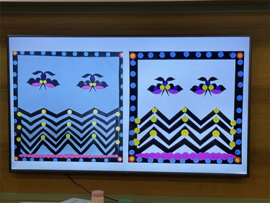 非遺傳承+創(chuàng)意實踐,解鎖剪紙新玩法。本次培訓以“創(chuàng)意剪紙臺歷”為創(chuàng)作主題,打破傳統(tǒng)剪紙的應用場景。蔣娟老師先手把手指導學員掌握相框邊框的剪裁技巧,再教授蝴蝶、圓點等裝飾元素的剪制方法,夯實基礎技能。學員們在掌握核心技法后自由發(fā)揮創(chuàng)意,將各類剪紙素材巧妙拼接粘貼,打造出一幅幅風格各異、生動鮮活的臺歷作品。