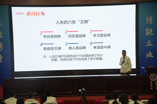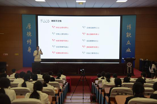 最后李林生大師指出烹飪更核心的是“立德”:李大師分享“事業做加法、人脈做乘法、享受做減法、心態做除法”的“人生四法”,叮囑大家牢記“信人不騙、幫人不忘”的處世底線,并寄語新生“學歷銅牌、勤奮王牌”等“人生六張王牌”,并擲地有聲強調:“人生價值不僅是在這個行業里獲得了多少財富,而是為這個行業創造了多少財富” 。諄諄教誨,讓現場師生受益匪淺。