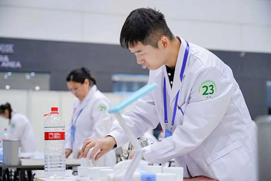 畢業(yè)后,翁致遠(yuǎn)始終保持著對(duì)技能提升的追求,密切關(guān)注人社部門(mén)、成校組織的職業(yè)技能培訓(xùn),主動(dòng)選擇感興趣的領(lǐng)域深耕。2022年,他報(bào)名參加評(píng)茶培訓(xùn),不僅順利考取高級(jí)評(píng)茶員證書(shū),更在學(xué)習(xí)中加深了對(duì)茶文化的熱愛(ài)。從嘉興市賽的初露鋒芒,到省賽的層層突圍,再到站上全國(guó)賽場(chǎng),他的備賽之路滿是汗水:因肢體殘疾,他在實(shí)操動(dòng)作、感官判斷上需要付出更多努力,賽前60余天的集中訓(xùn)練里,他研習(xí)200余種茶樣、開(kāi)展300余次模擬賽事,始終繃緊“嚴(yán)謹(jǐn)備賽”這根弦,用反復(fù)打磨的技藝彌補(bǔ)差距。