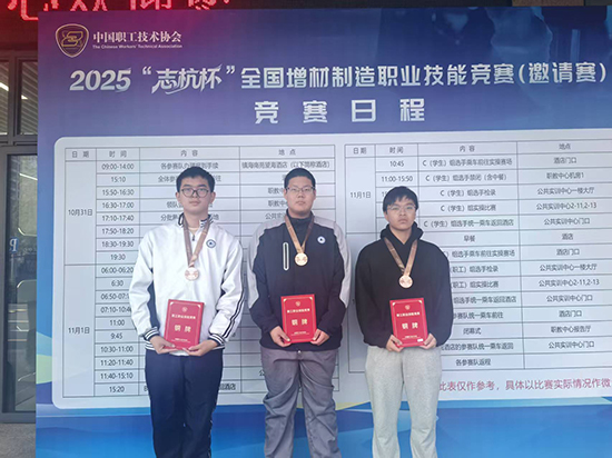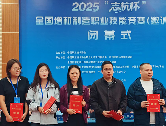 在2025年“志杭杯”全國增材制造職業技能競賽中,湖州技師學院鄒良香、聞祎婷兩位老師分獲教師組二等獎、三等獎,由他們指導的兩名學生張凱峰、趙磊分獲學生組二等獎、三等獎,他們用實力展現了技工教育師生的青春活力與技能風采。職業中專謝昀哲、黃知涵、陳宇哲3名學生參賽,在指導教師施國扣、張昱平、王穎斌的精心指導下,均獲三等獎,獲獎率100%,展現出良好的專業技能與綜合素養,充分彰顯學校智能制造領域的教學實力和辦學水平。