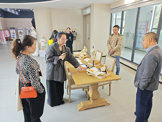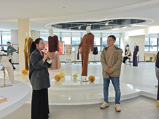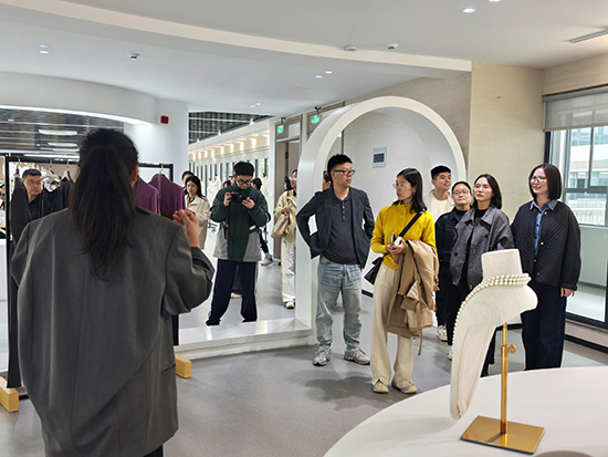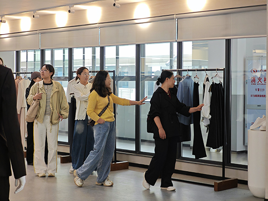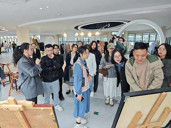 研修團隊首站抵達溫州市甌海職業中專集團學校,在對方校領導陪同下,參觀時尚設計學部服裝實訓室,實地了解產教融合模式。
