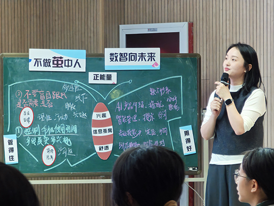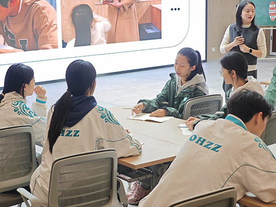 研修團隊共同觀摩了溫州市甌海職業中專集團學校班主任基本功大賽國賽選手金穎穎老師執教的主題班會課《不做中繭人,數智向未來》。課堂上,金老師以趣味化的互動設計、層層遞進的引導邏輯,讓學生深刻認識 “信息繭房” 對成長的局限,并鼓勵大家主動打破認知 “舒適圈”,在多元探索中激發潛能、拓展邊界。這堂兼具趣味性與啟發性的班會課,為在場班主任提供了 “可復制、可落地” 的班級教學實踐范例。